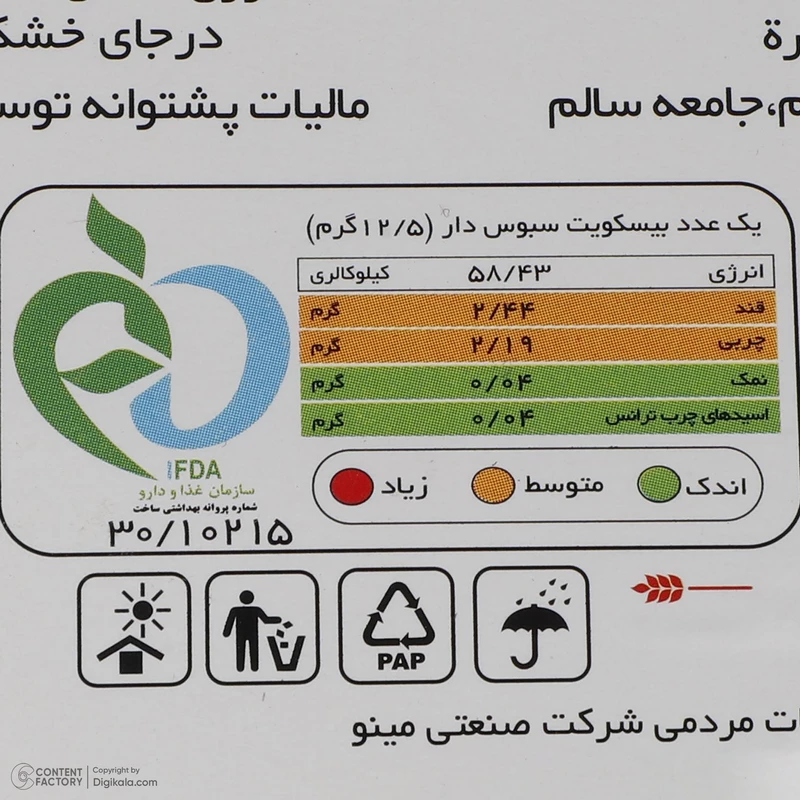 بیسکویت جعبه ای پذیرایی سبوسدار مینو - 700 گرمی